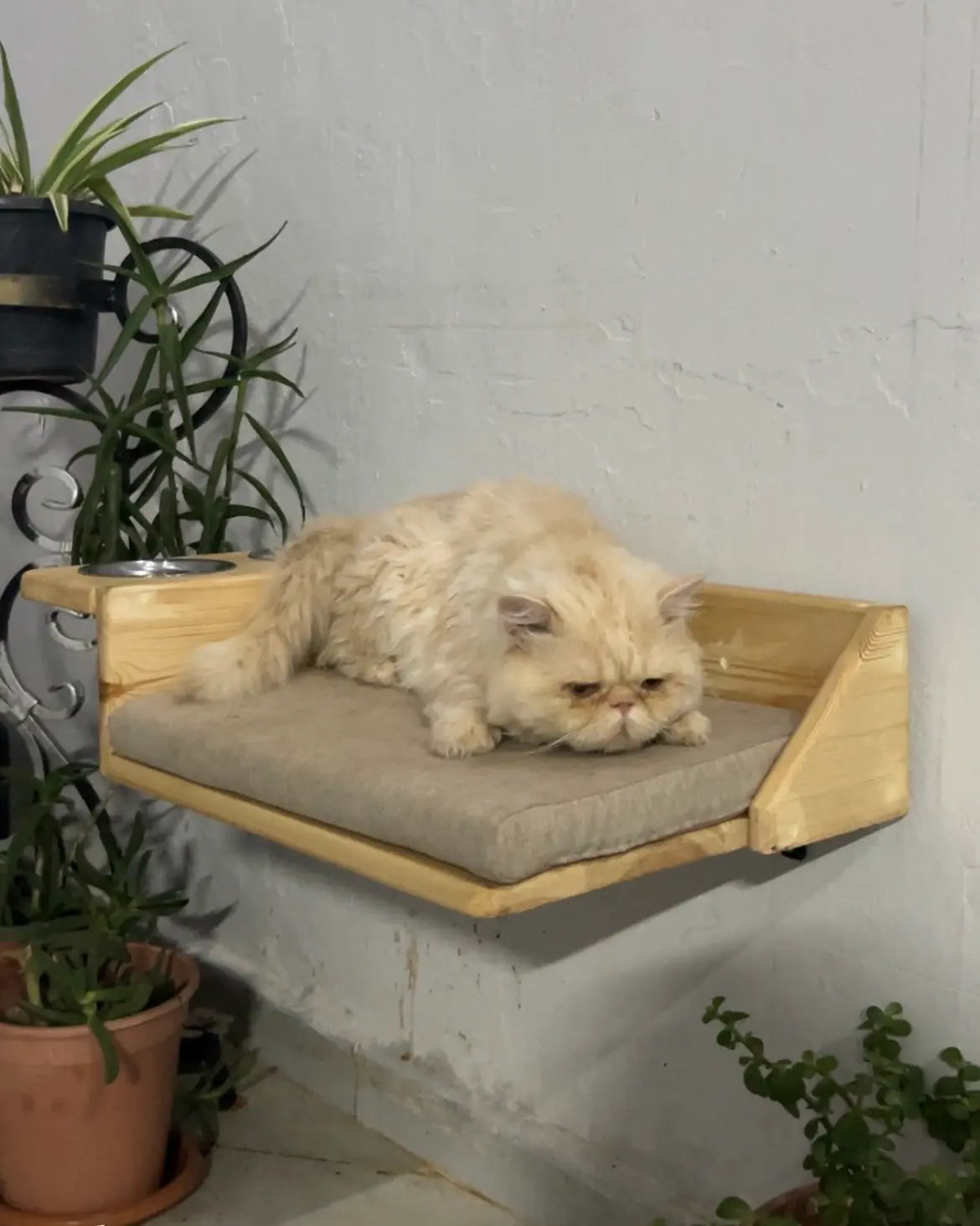 تصميم جداري يوفّر المساحة ويرفع مكان القط بعيدًا عن الأرض.